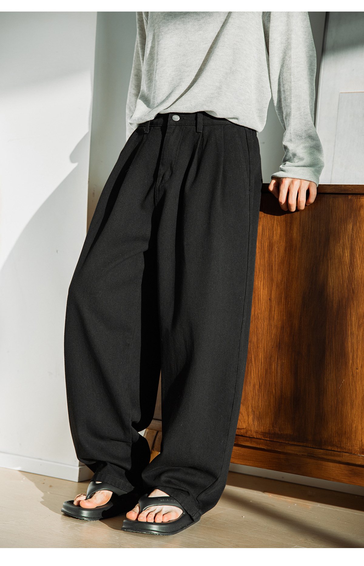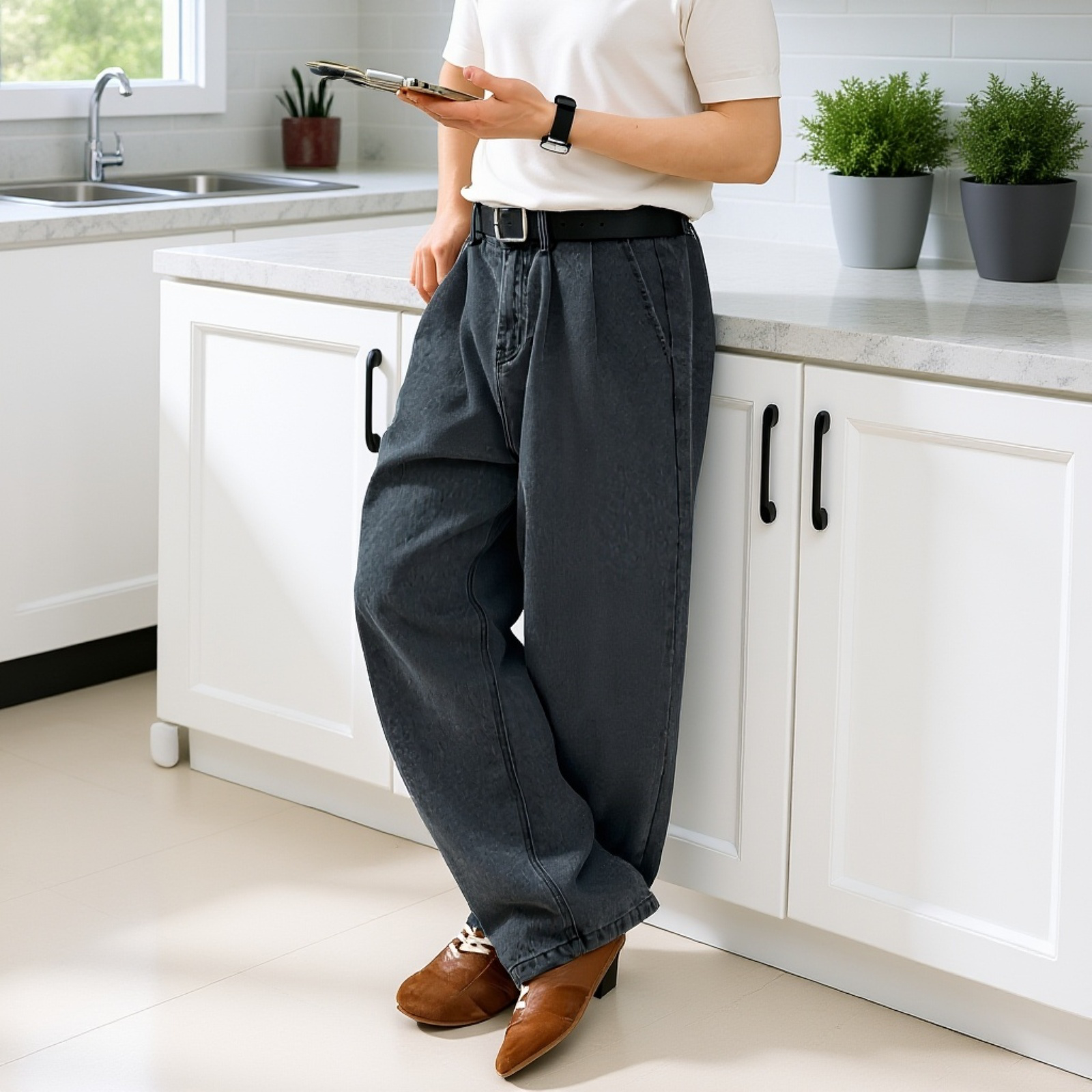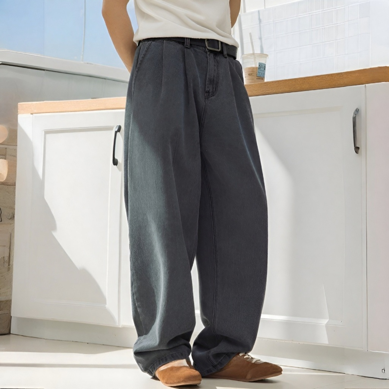 大きめサイズでリラックスできるパンツ