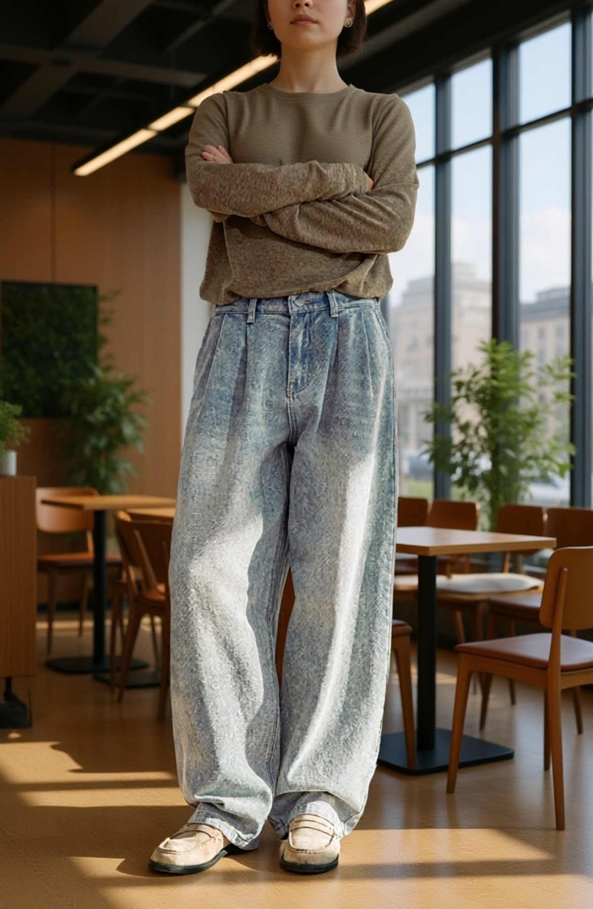 ● ゆったりとしたストレートシルエットと大きめサイズ設計で、体型を選ばずリラックスしてお洒落を楽しめます。
