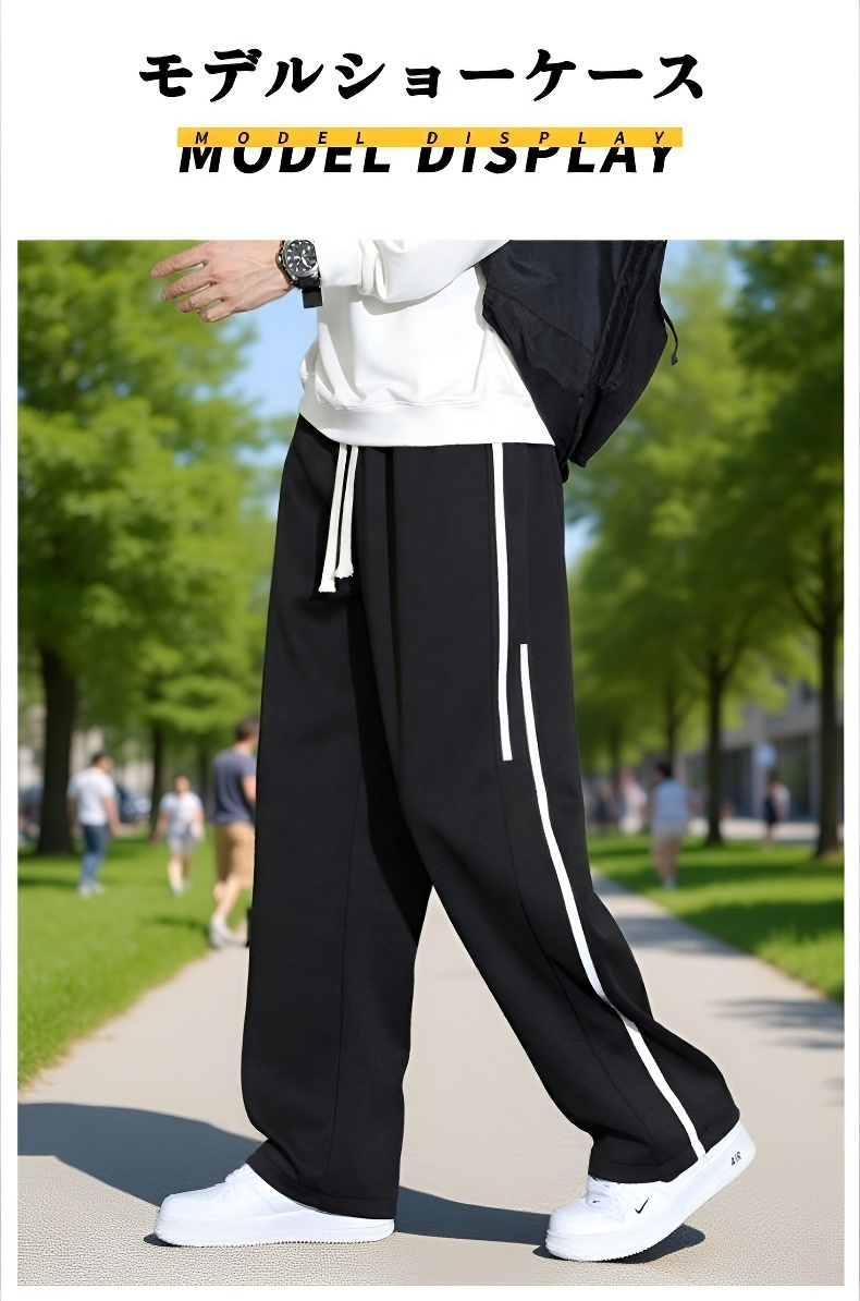 ● ゆったりとしたワイドレッグデザインで、動きやすさとトレンド感を兼ね備えた秋冬メンズスポーツロングパンツです。